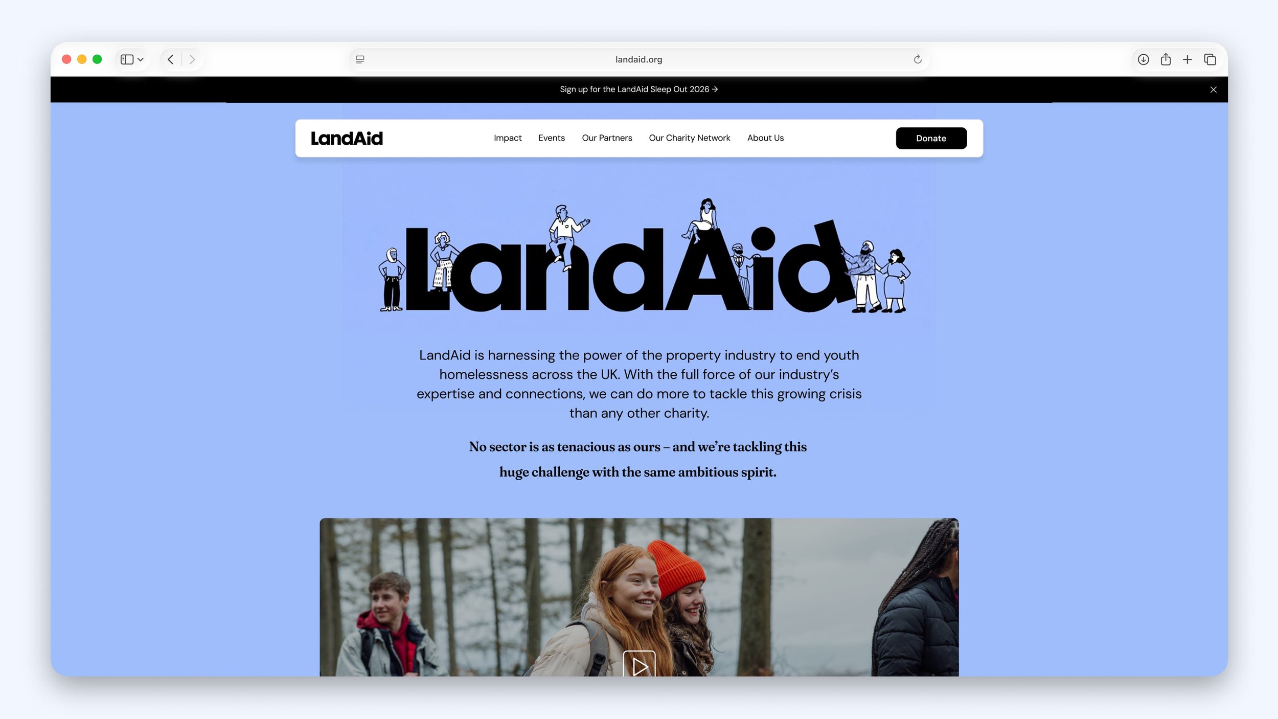 Pro bono redesign of a charity website supporting the property industry in tackling youth homelessness, with an original sitemap exceeding 300 pages.